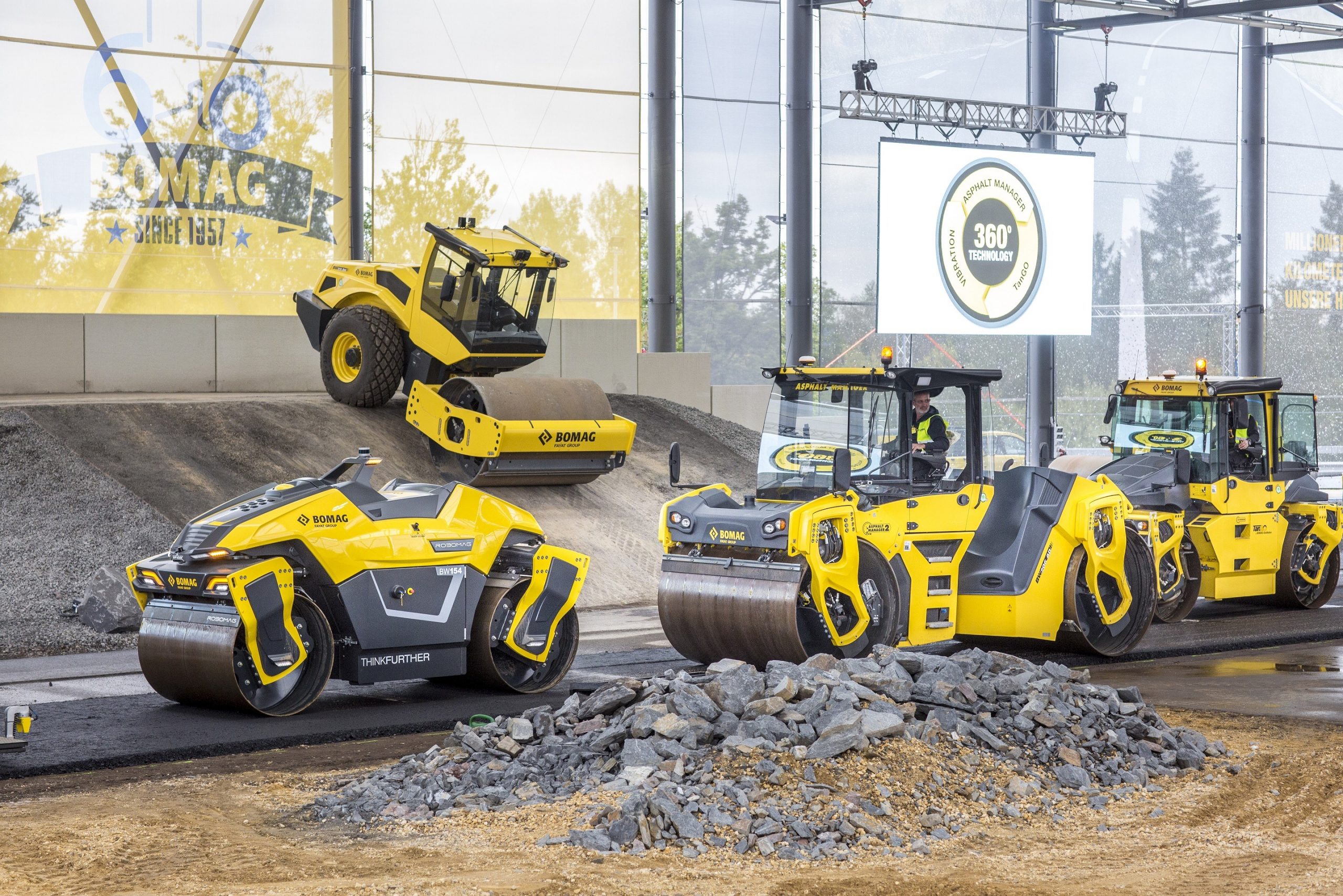 A partie d’un panel de clients sélectionnés , Bomag va mettre en test l’assistance au freinage d’urgence sur divers chantiers de construction dès cette année. L’amélioration de la technologie au stade production en série bénéficiera à tous les clients avec un service dédié aux systèmes numériques, tout comme pour les composants mécaniques.